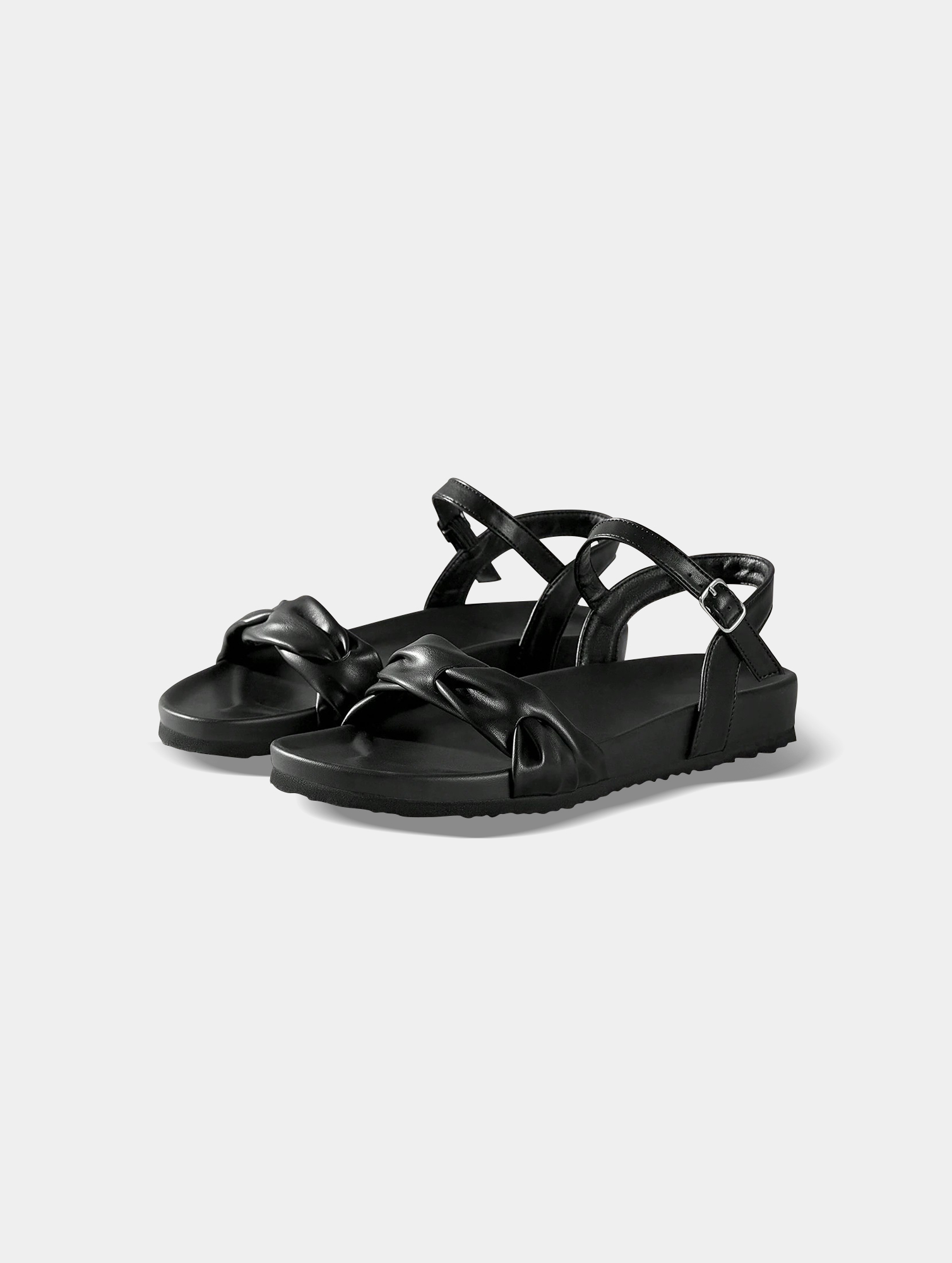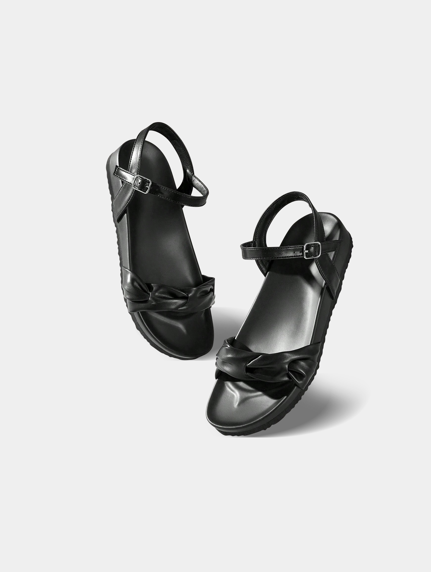 Women’s Black Strappy Platform Sandals – Knot Detail, Rubber Sole