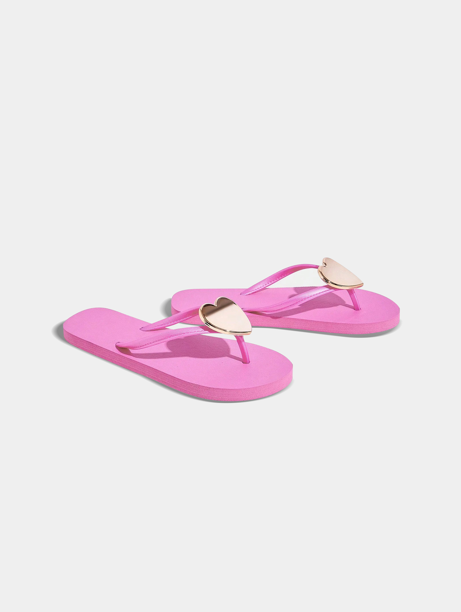 Women’s Pink Heart-Decor Flip Flops – Metallic Accent, EVA Sole